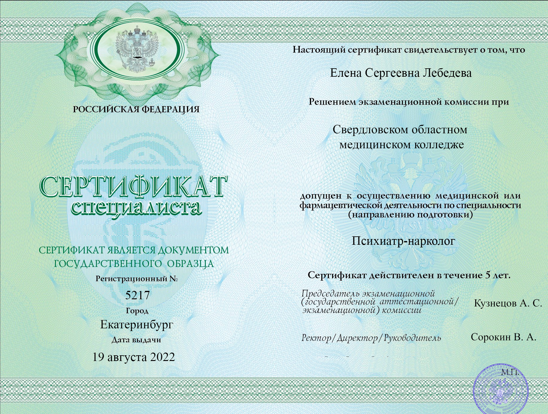 Елена Сергеевна Лебедева врач нарколог клиники доктора Стукаловой в Корсакове